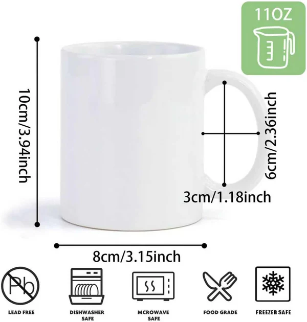Wide Variety of Uses: These white coffee mugs hold up to 11 oz and are perfect for brewing tea, coffee, lattes, smoothies, desserts, and juices.Our mug suitable for mug press and also oven press
