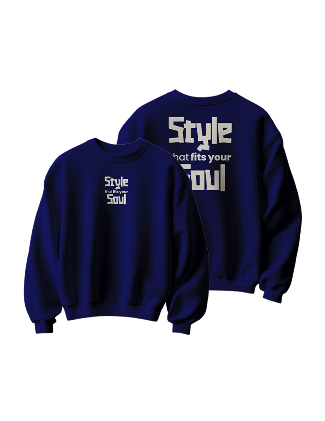 Front Print: Minimal yet impactful “STYLE that fits your SOUL” typography placed at the center chest with an underline message. The word “STYLE that fits your SOUL” is written above, adding a personal and aspirational touch.